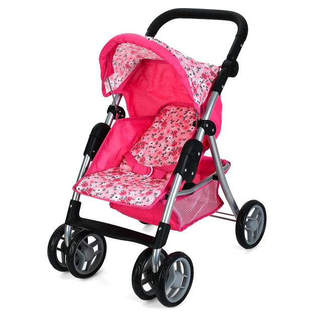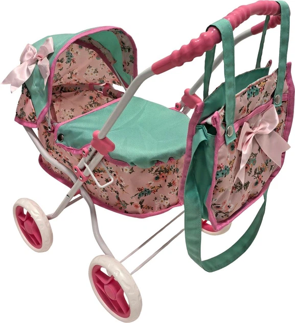 Коляска для ляльки MELOGO 9352/011 Квіточки рожева з чорним