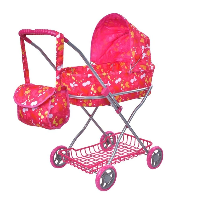Візок для ляльки 6601 AH-3 металева основа, козирок від сонця, кошик, додаткова поличка, в коробці