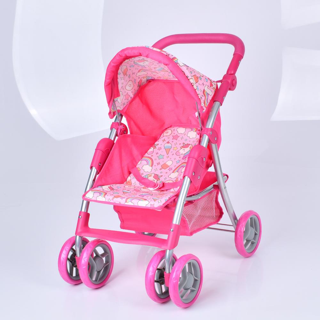Коляска для ляльки,прогул,метал+тканина,рег.руч,колеса6шт,кошик,в коробці,52,5-33-13см