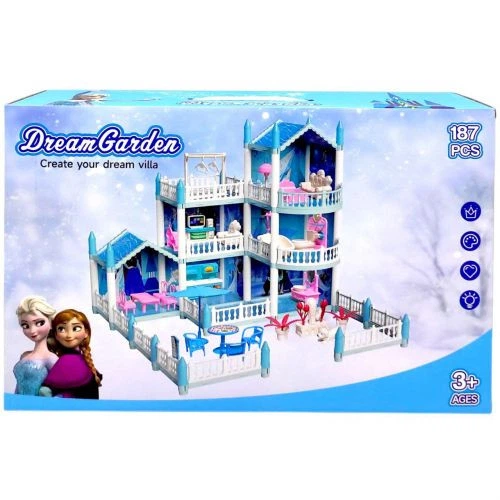 Ляльковий будиночок пластик 556-52A Будинок для ляльок 5 поверхів, лялька 10 см, тварини, меблі, світлові ефекти, рожевий