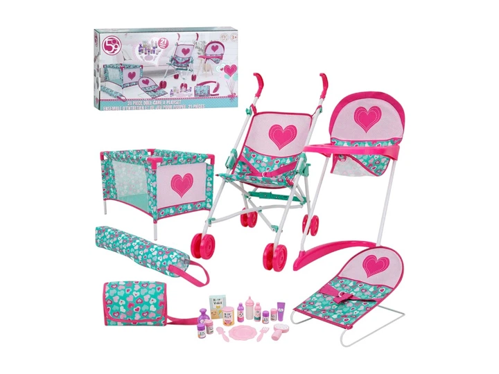 Набір ігровий для ляльки FiVEoNiNE візок стільчик для годування манеж шезлонг 21 предмет (T816057)
