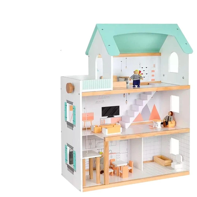 Великий ляльковий будиночок для ляльок та іграшок з меблями та підсвічуванням, дерев'яний (MD 0165)