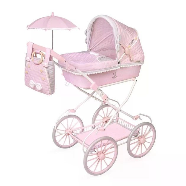 Ляльковий металевий візочок-люлька для ляльки з сумкою та парасолькою DeCuevas 81075 серії Софі