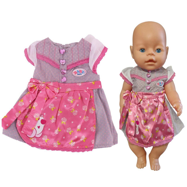 Одяг для ляльки Бебі Борн / Baby Born 43 см Сукня з бантом і сердечками рожево-сіра 8986