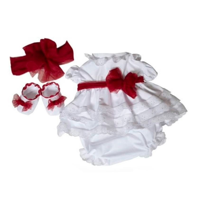 Набір одягу для пупсів Munecas De Cuna поєднує в собі стиль та ніжність, який так до вподоби маленьким модницям. У наборі: Сукня. Пінетки. Обідок. Гра з таким аксесуаром буде розвивати в дитині уяву, уміння гратися та турботу. Підходить для ляльок розміром 55 см
