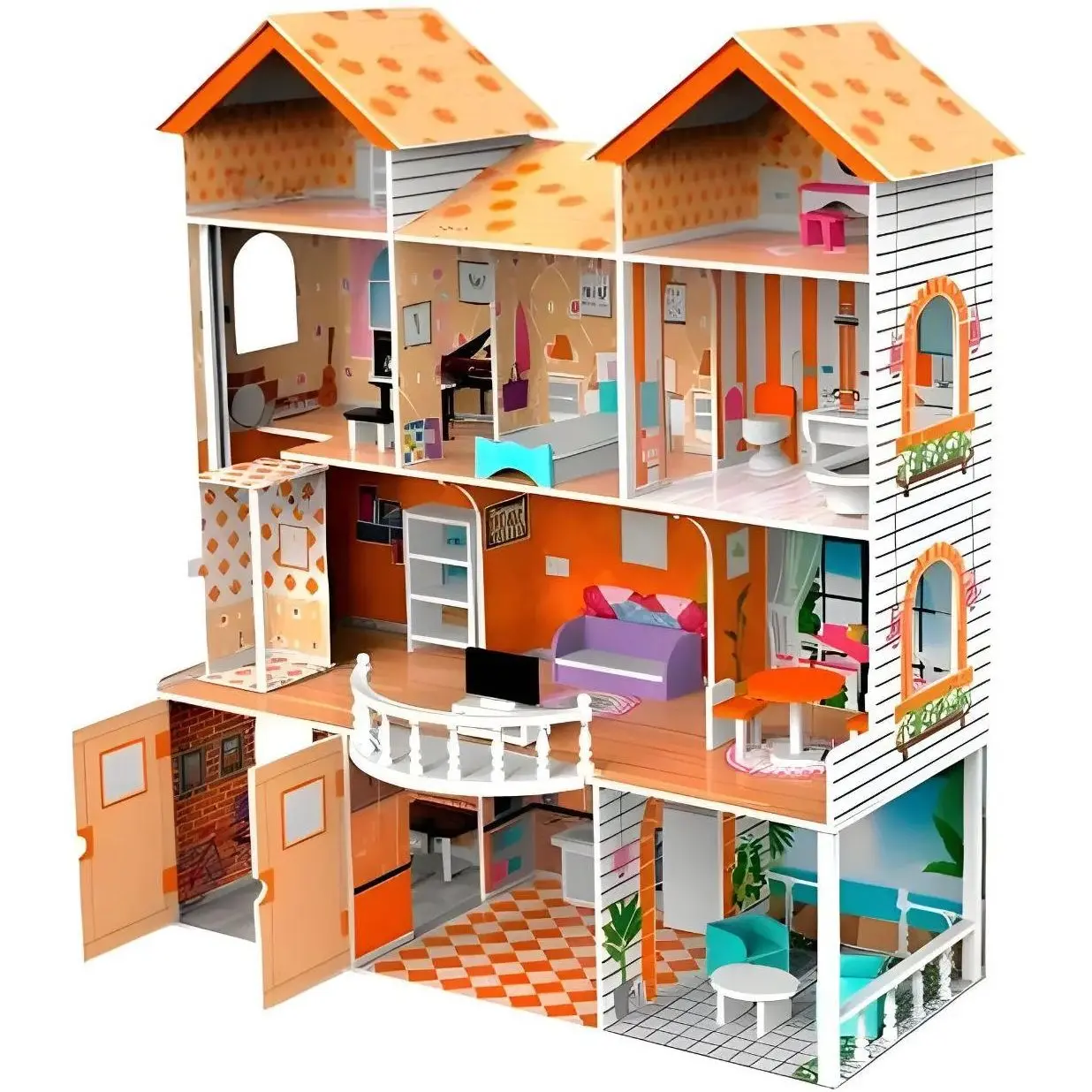 Великий дерев’яний ляльковий будиночок TX1283, триярусний, з інтер’єром