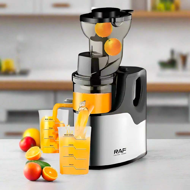 Електричний соковитискач RAF 1000Вт для яблук та цитрусових 450 мл