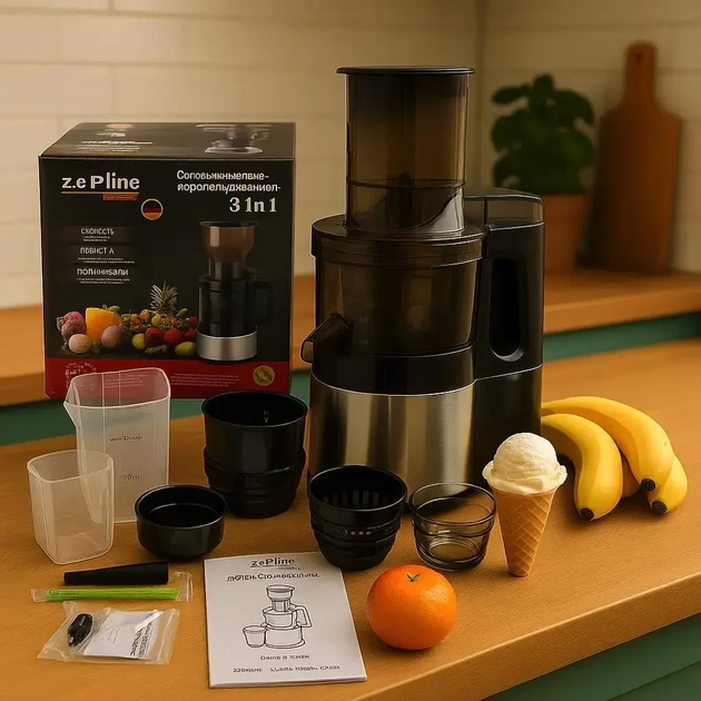 Соковитискач - морожениця Zep line 3 в 1 потужністю 3000 Вт шнекова з чашею об'ємом 0.3 л