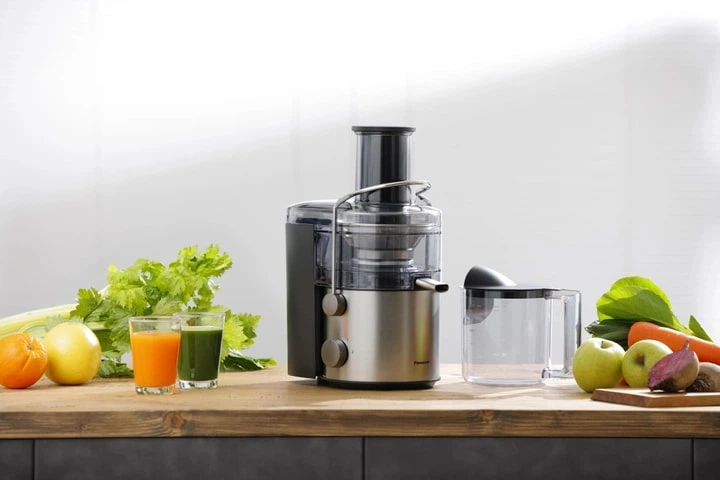Соковитискач Panasonic 1000 Вт для фруктів та овочів з контейнером 2 л срібляста чорна