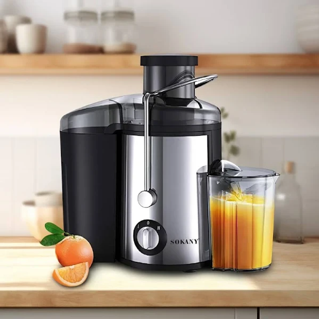 Соковитискач для фруктів та овочів на 2 швидкості зі сталі нержавіючої SOKANY 800 Вт.