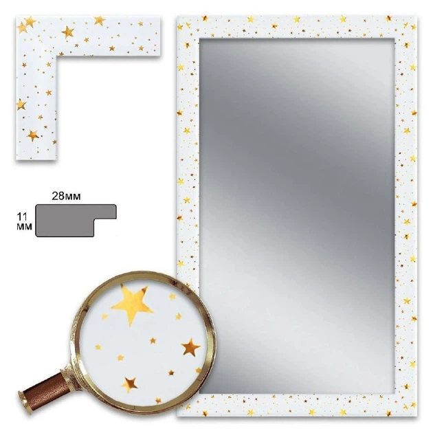 Дзеркало в багетній рамі із золотистими зірочками "Magia Star" (550х350х11)