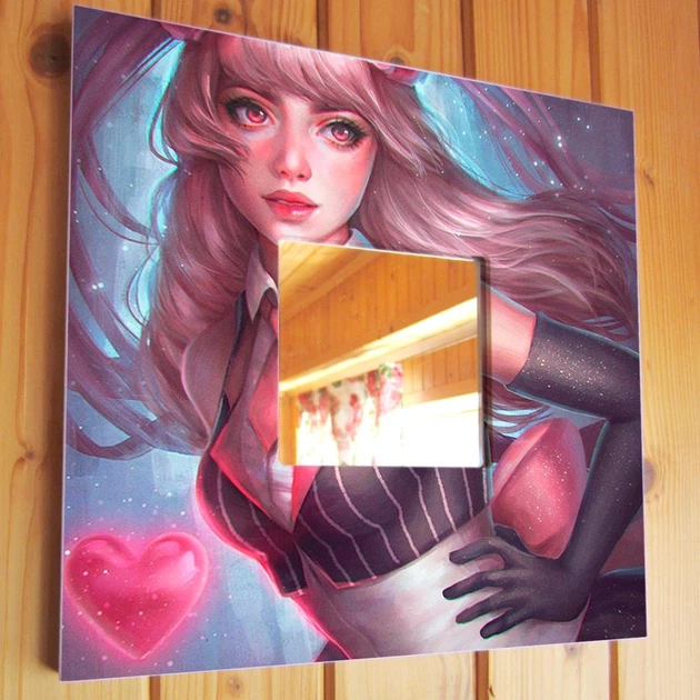 Декоративне дзеркало «Дівчина в стилі аніме» манга арт малюнок, стильний декор для спальні, супер подарунок