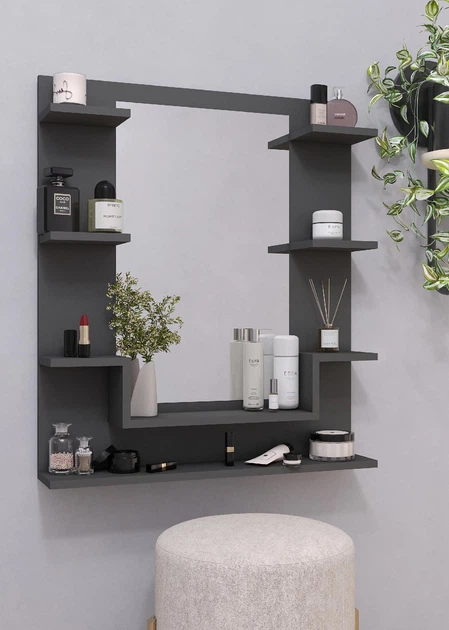 Навісна настінна тумба 724х828х150 мм із полицями та дзеркалом у ванну чи салон (NT-3) Антрацит