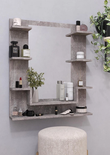 Навісна настінна тумба 724х828х150 мм із полицями та дзеркалом у ванну чи салон (NT-3) Бетон