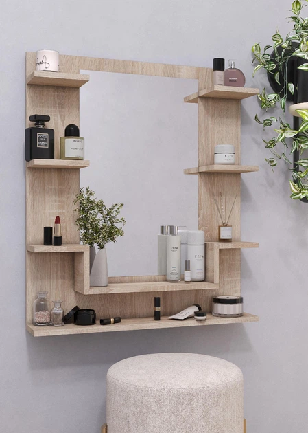 Навісна настінна тумба 724х828х150 мм із полицями та дзеркалом у ванну чи салон (NT-3) Сонома