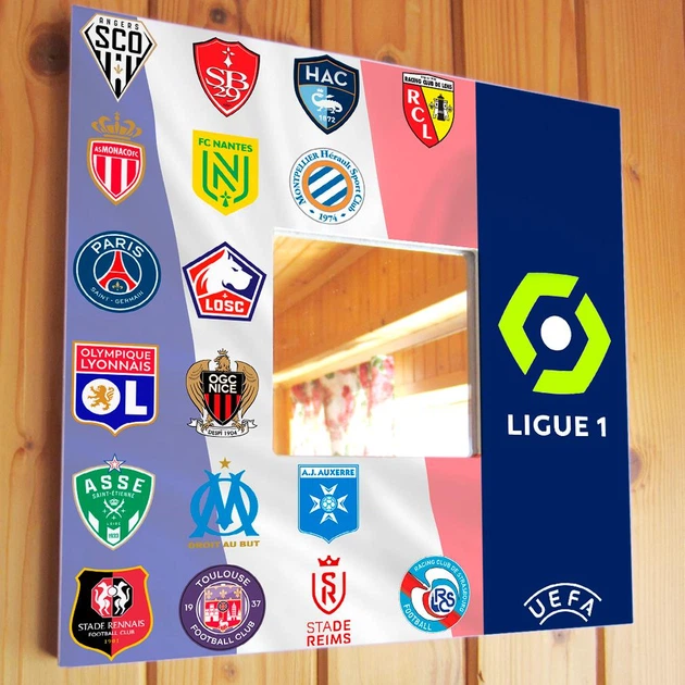 Декоративне дзеркало «Футбол. Клуби Чемпіонату Франції Ліга 1. Ligue 1» подарунок для фанатів, прикраса спальні, спорт клубу