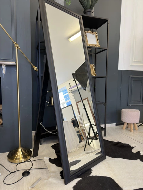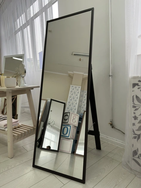 Дзеркало підлогове в повний зріст на підставці велике в рамі прямокутне 500х1500 мм Чорний