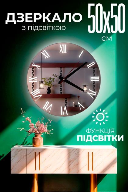 Дзеркало з підсвіткою LED 50х50 см настінне дзеркало в прихожу смарт дзеркало з годинником римські світлодіодне BRS