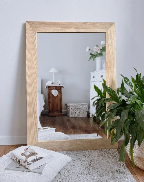 Настінне дзеркало в дерев'яній рамі HomeDeco біле 100х70