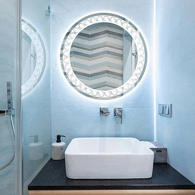 Дзеркало настінне Art-com безрамне кругле з Led-підсвічуванням Орнамент 550 мм без сенсорної кнопки, без вимикача (БРЛ 18 55