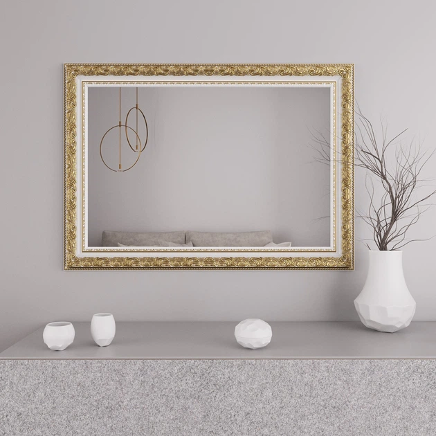 Дзеркало на стіну 106х76 Біле з патиною золота Black Mirror 8731А-64G в ванну передпокій коридор спальню