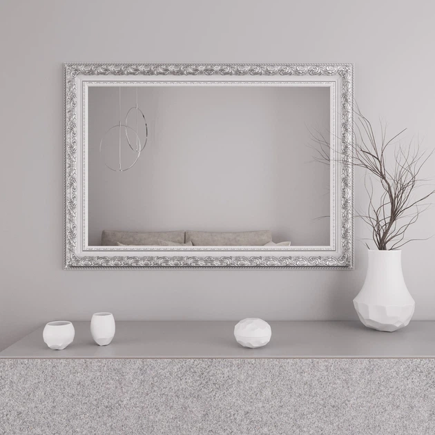Дзеркало на стіну 106х76 Біле з патиною срібла Black Mirror 8731А-64S в ванну передпокій коридор спальню