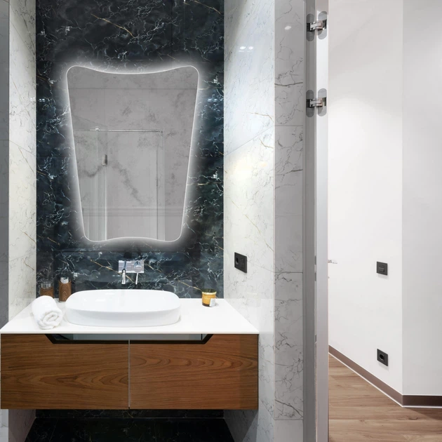 Дзеркало настінне Art-com безрамне фігурне з Led-підсвічуванням 800х600 мм без сенсорної кнопки, без вимикача (БРЛ 22 ROZ990