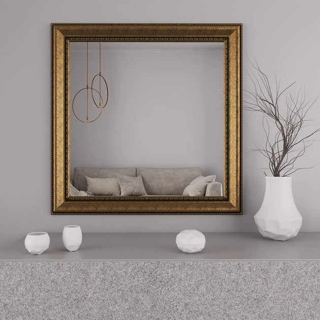 Дзеркало на стіну 96х96 Золотисте Black Mirror 8731-03 квадратне в ванну передпокій коридор спальню