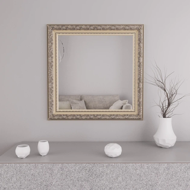 Дзеркало на стіну 96х96 Беж з патиною срібла Black Mirror Айворі 8731А-308 в ванну передпокій коридор спальню