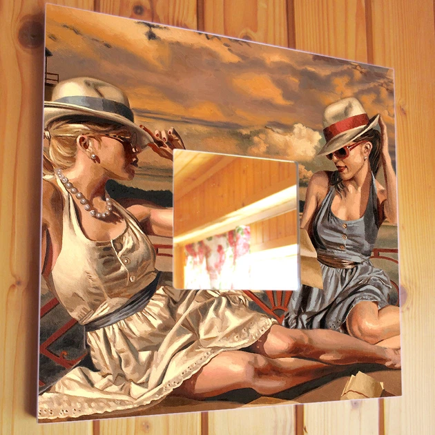Декоративне дзеркало картина "Модниця" стильна прикраса для спальні будинку, дизайнерський декор в подарунок
