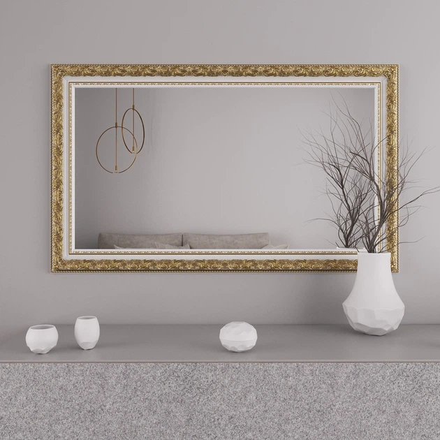 Дзеркало на стіну 126х76 Біле з патиною золота Black Mirror 8731А-64G в ванну передпокій коридор спальню