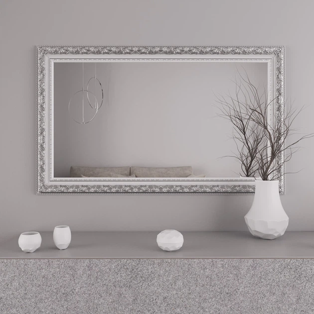 Дзеркало на стіну 126х76 Біле з патиною срібла Black Mirror 8731А-64S в ванну передпокій коридор спальню