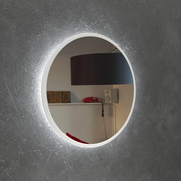 Кругле настінне дзеркало з підсвіткою і сенсорною кнопкою Лайн Ольян діаметром 60 см колір білий