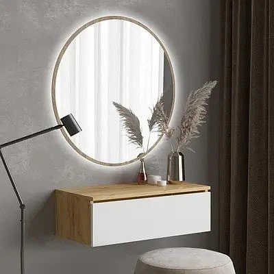 Кругле настінне дзеркало з підсвіткою і сенсорною кнопкою Лайн Ольян діаметром 60 см колір дуб сонома