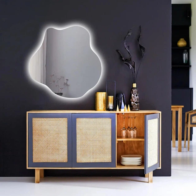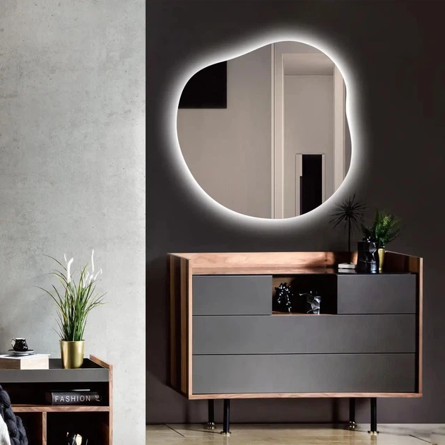 Дзеркало настінне ассиметричної форми з підсвічуванням для дому та салону краси АртДекор БРЛ 12 55х55 см