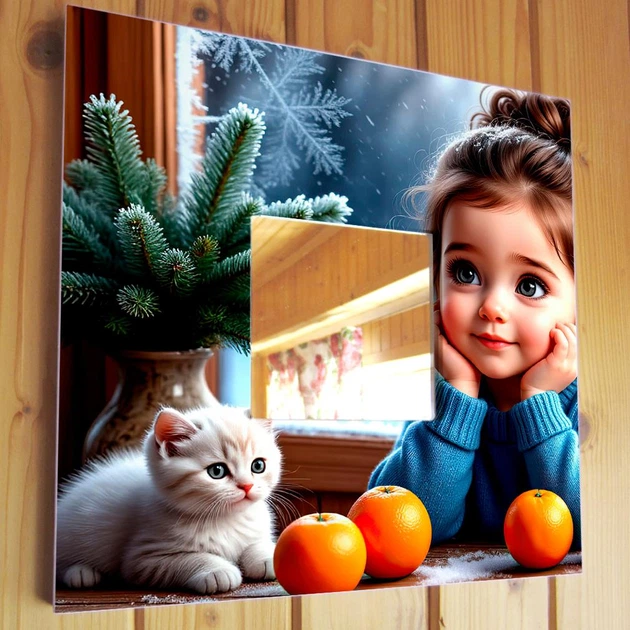 Декоративне дзеркало "Дівчинка і зима" романтична прикраса інтер'єру спальні, дитячої кімнати, милий подарунок