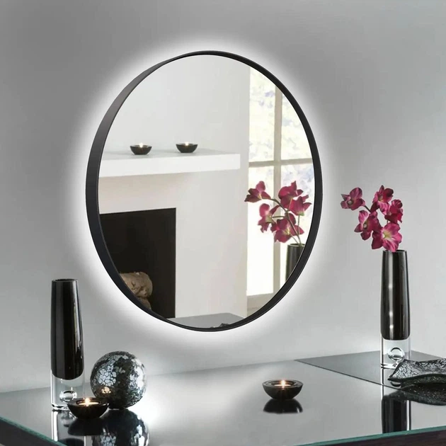 Дзеркало настінне Art-com в металевій рамі 600 мм з підсвіткою МРЛ 1 Д із сенсорною кнопкою (вимикач) Чорне (МРЛ 1 Д ROZ6400