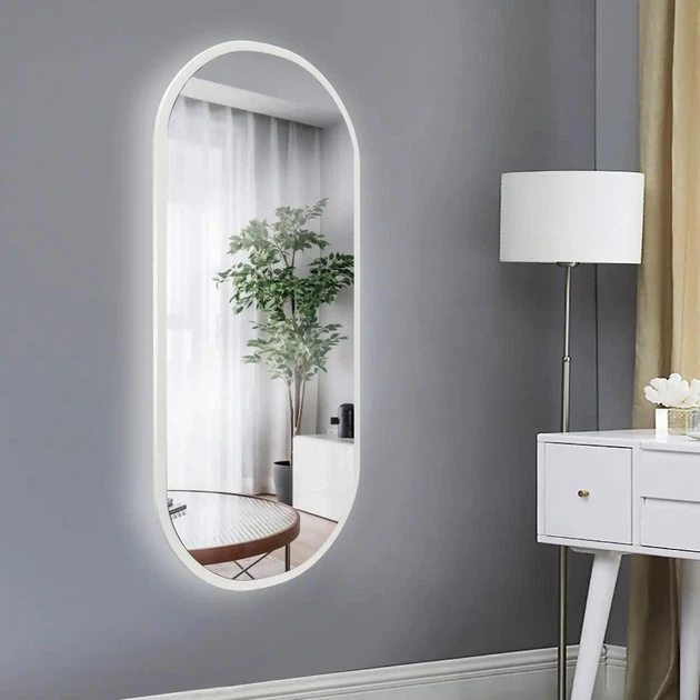 Дзеркало настінне овальне вологостійке з підсвіткою Лайн Яста 130х60 см колір білий