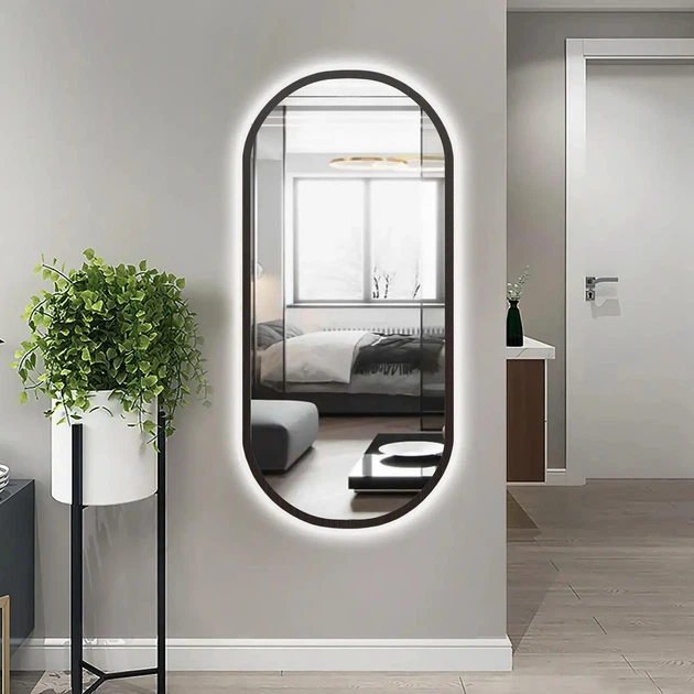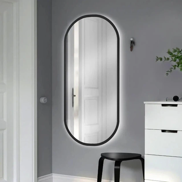 Дзеркало настінне овальне вологостійке з підсвіткою Лайн Яста 130х60 см колір чорний