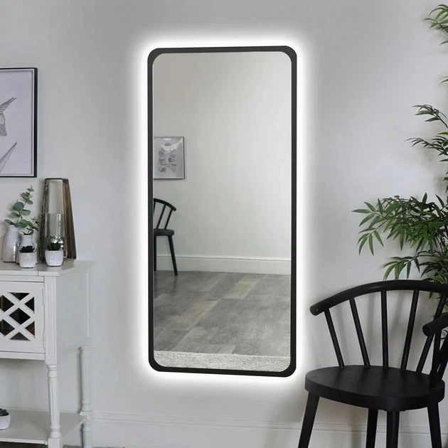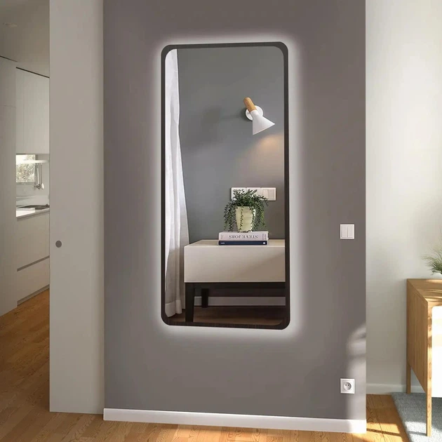 Дзеркало настінне із заокругленними кутами з підсвіткою Лайн Апрі 130х60 см колір чорний