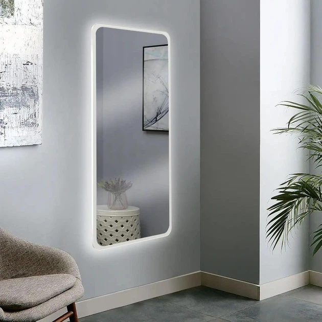 Дзеркало настінне із заокругленними кутами з підсвіткою Лайн Апрі 130х60 см колір білий