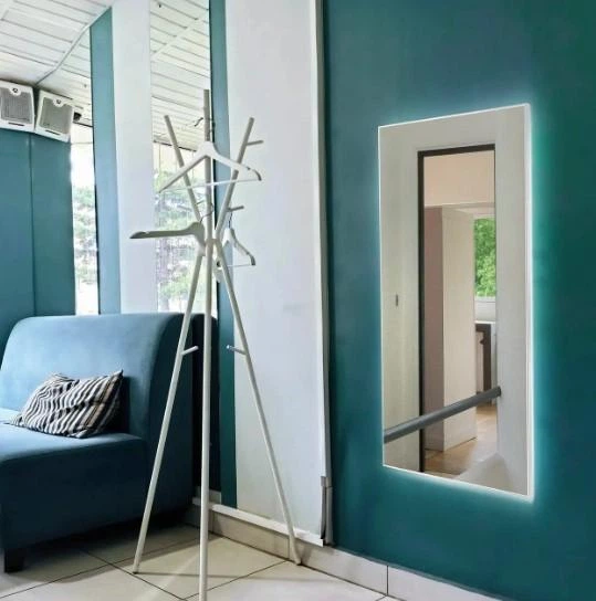 Зеркало настінне 1200 х 600 мм із підсвіткою в алюмінієвій рамі білого кольору+ сенсорна кнопка (вимикач)