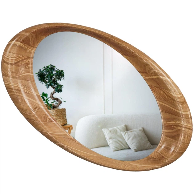 Дзеркало настінне, овальне, дерев'яна рама, зеркало у ванну 70.5х54.7 см з натуральний