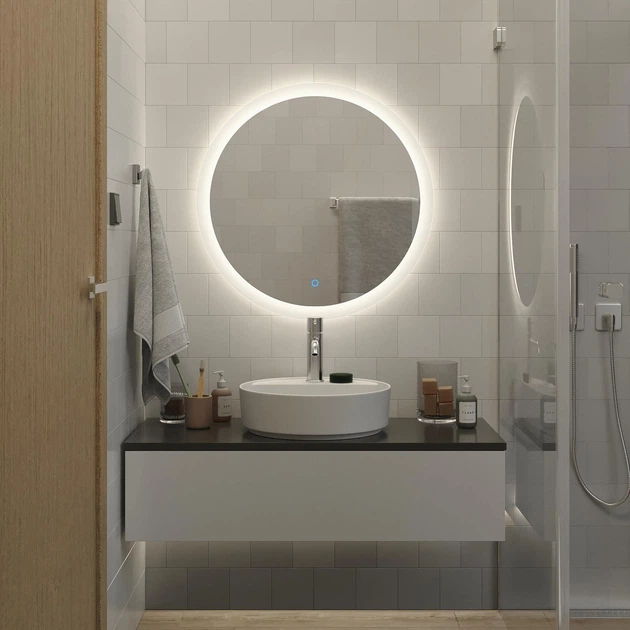 Дзеркало з підсвіткою кругле Сайн для ванної кімнати, спальні, передпокою, 700 мм