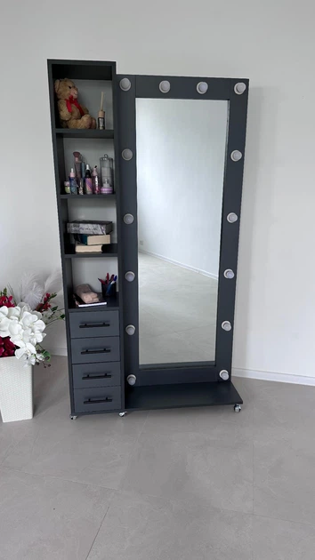 Дзеркало для макіяжу з підсвіткою в повний зріст з шухлядами та поличками 187x110 Графіт