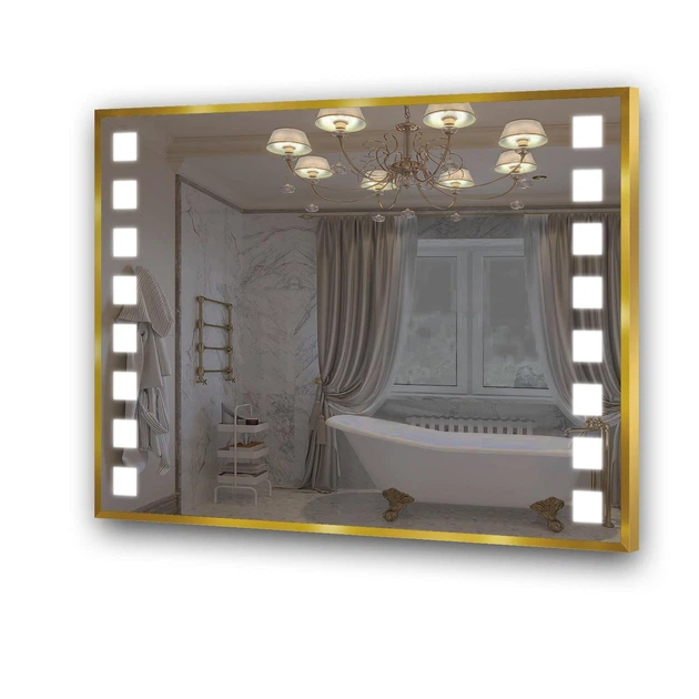 Дзеркало в алюмінієвій рамі із підсвічуванням квадрати MLADA GOLD (1200x700x30)