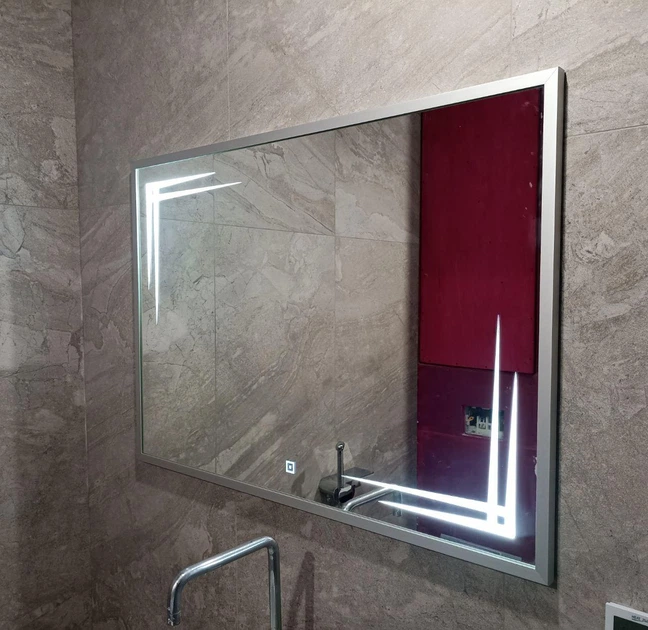 Дзеркало в срібному обрамленні з підсвіткою та сенсорним вимикачем