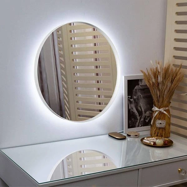 Дзеркало кругле настінне в металевій рамі з підсвіткою і сенсорною кнопкою Арт Декор MРЛ 3 Д діаметр 100 см колір білий