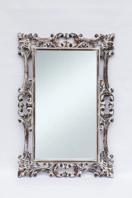 Дзеркало в дерев'яній різьбленій рамі Ажур натуральний з білою патиною 120см*80см (71 2053)