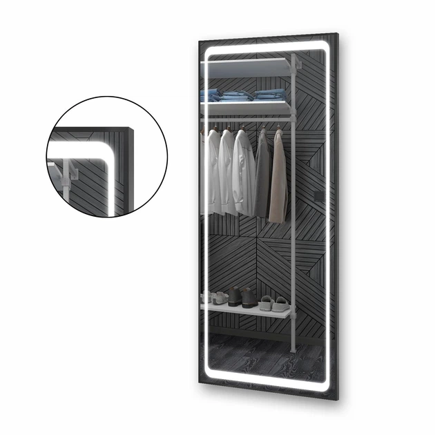 Дзеркало в повний зріст VESNA BLACK в алюмінієвій рамі з підсвічуванням LED (1200x700x20)